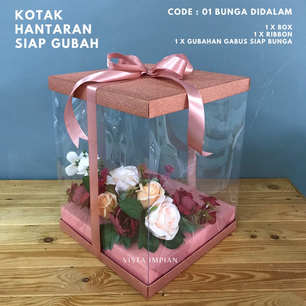 Kotak Hantaran Siap Gubah Bunga Ikut Tema Anda Kotak Hantaran Transparent Pvc 10x10 Shopee Malaysia